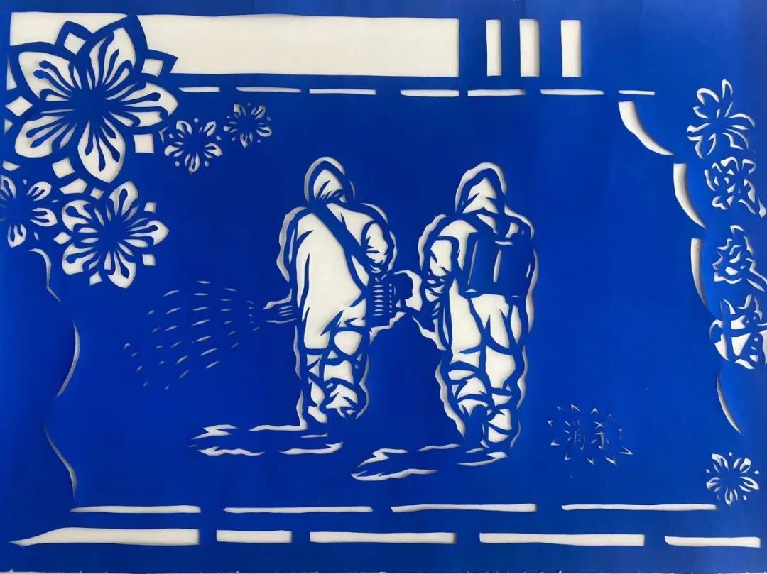据介绍,疫情防控期间,郑春华除了完成线上课后辅导外,还密切关注疫情防控前线的最新动态,她在感恩抗疫工作者的辛勤付出之余,便以医护人员、志愿者、党员干部等为主角,陆续创作了10余幅剪纸作品,记录下社会各界齐心抗疫的生动画面。