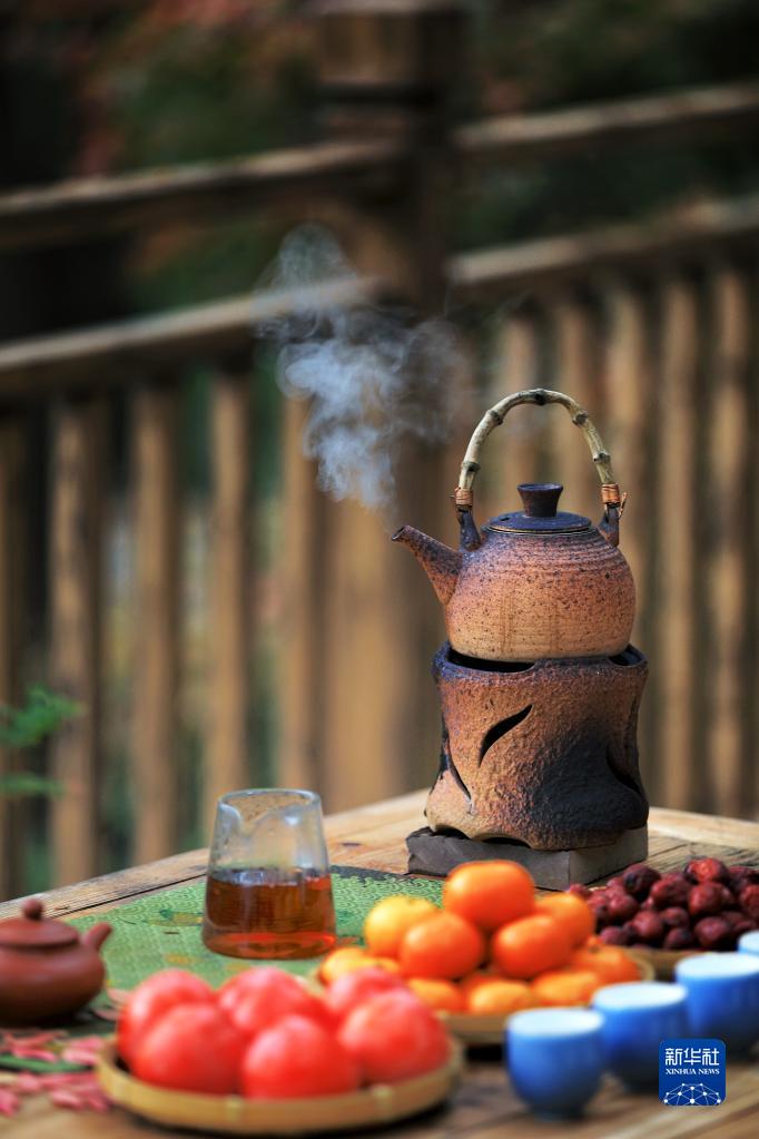 11月15日,在南平武夷山市,人们围炉煮茶。