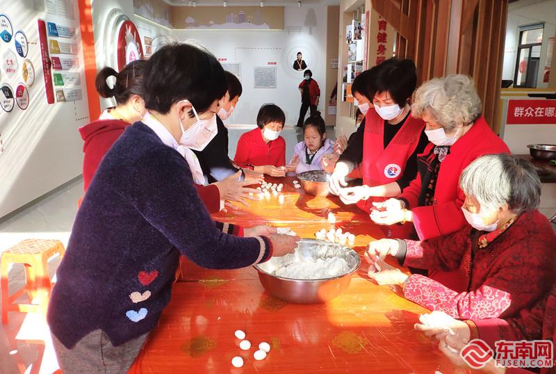 志愿者与居民们一起搓汤圆(内官社区新时代文明实践站供图)