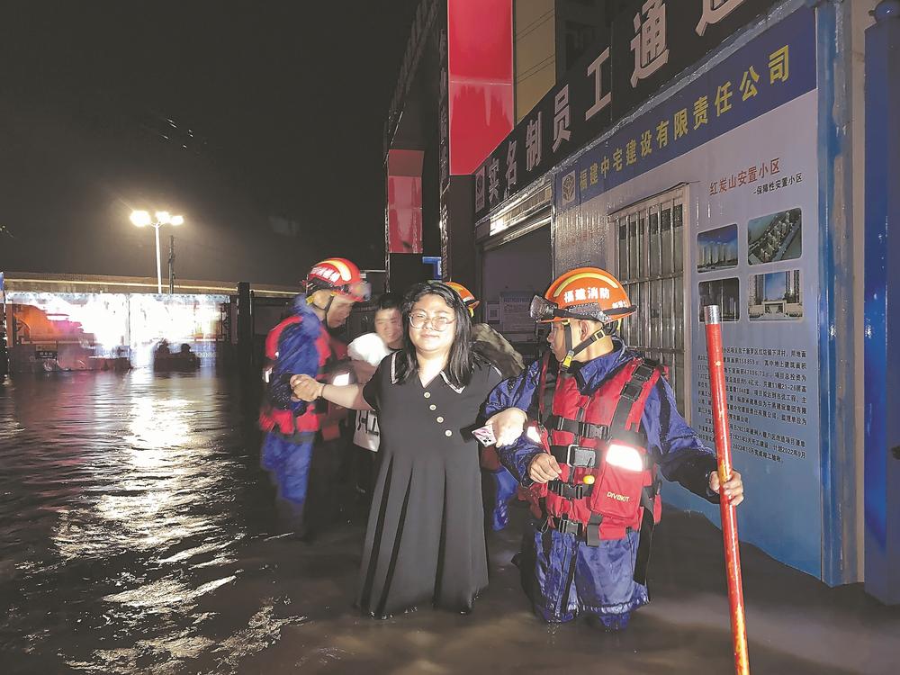 6日23时许,龙岩市新罗区红炭山安置小区路段涨水,一辆汽车熄火,被困路中。龙岩市消防救援支队迅速赶赴现场,救出两名群众。
